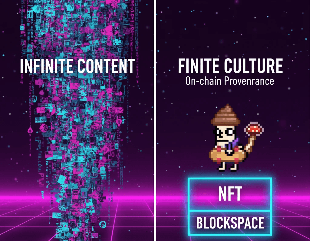 We’re heading into an era where great-looking content is nearly free to produce. When content supply goes to infinity, the premium shifts to verifiable origin (provenance), credible scarcity, and network consensus. Onchain artifacts have all three. That’s the pivot: infinite content, finite culture.